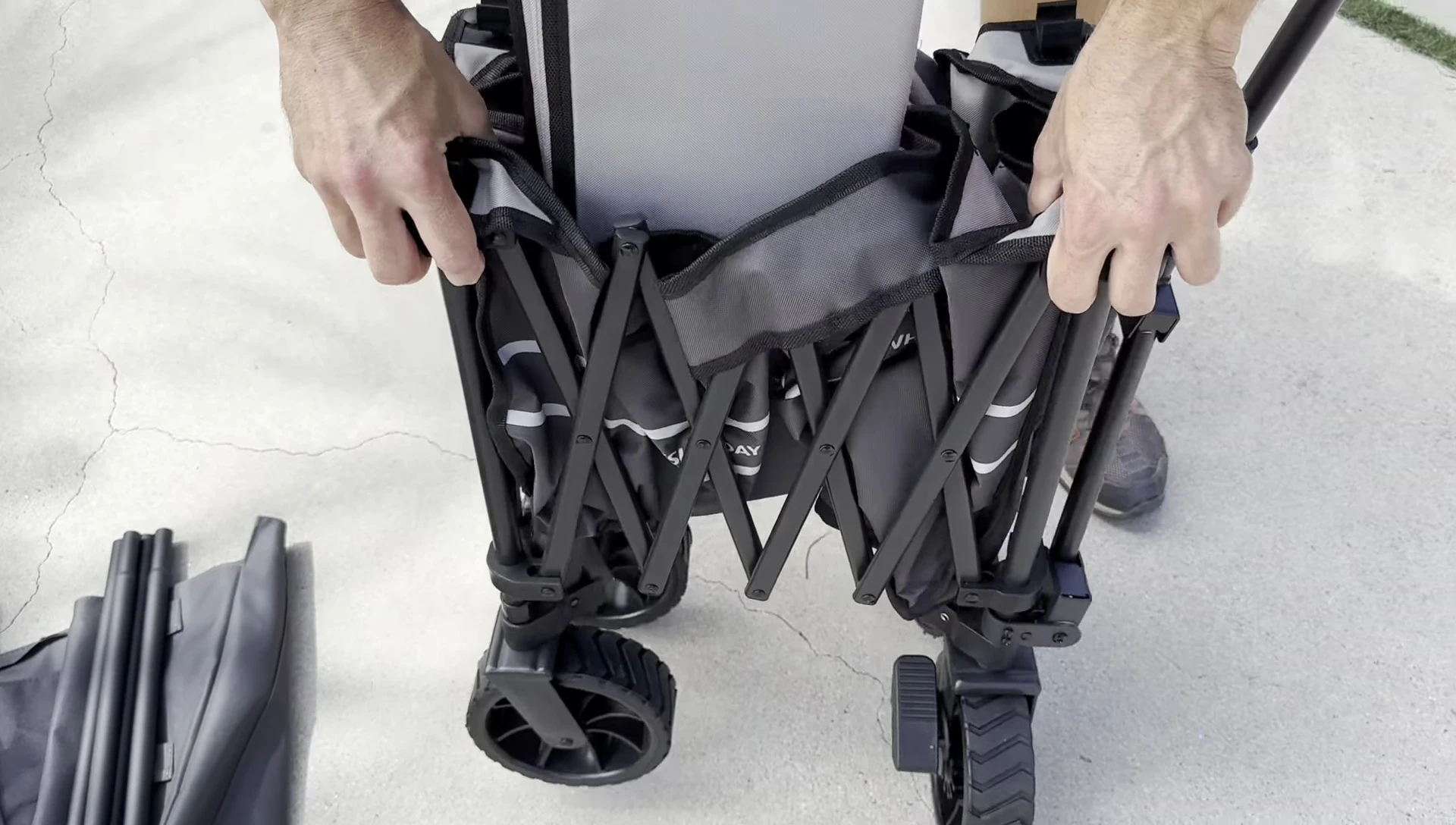Setting up the wagon is a straightforward process. Pulling it open is effortless, and a center strap secures it in the open position. The sturdy hard floor is essential for preventing items from falling through.