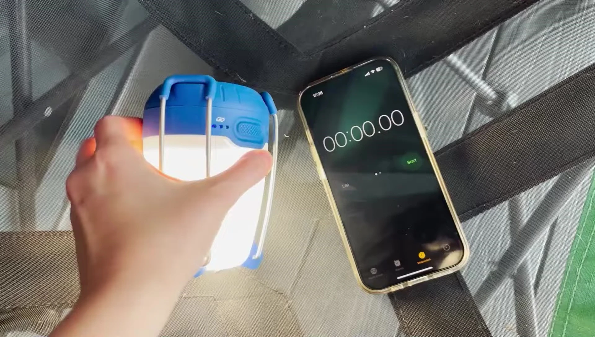 This test measured each lantern's runtime on a full charge, both at maximum and minimum brightness settings. A stopwatch tracked the duration until the lantern’s light extinguished. The maximum runtime was recorded at the dimmest setting, indicating the longest possible use.