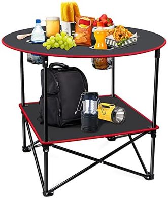 This portable camping table is a game-changer! Users rave about its sturdy construction and ease of assembly, making it perfect for camping trips, concerts, beach days, or even pontoon boat outings. The clever design, described by some as "taco-shaped," folds compactly for easy storage and transport. The integrated drink holders are a hit, with users cleverly repurposing them for small, easily lost items like glasses and knives. The additional lower shelf provides extra space, keeping items off the ground. While some mention the carrying case can be slightly tricky to use, the overall consensus highlights the table's exceptional value, lightweight design, ample surface area, and convenient size. It's a versatile and stylish addition to any outdoor setup, earning compliments wherever it goes.